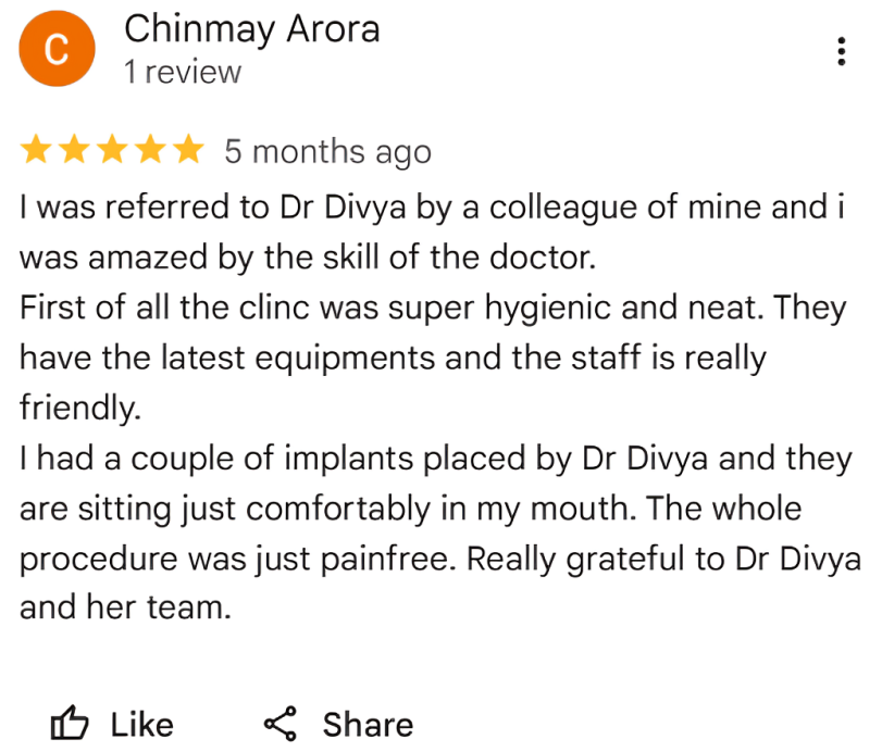 We maintain a clean and safe environment in the clinic. All tools are properly cleaned, the staff wears protective gear, and we sanitise surfaces regularly. If youâre visiting a dentist near me and are concerned about hygiene, thatâs a valid and important question. We also give time between patients to clean everything properly. Patients often tell us they feel safe here just by how we manage cleanliness. We treat this as a non-negotiable part of care â not just something we say.