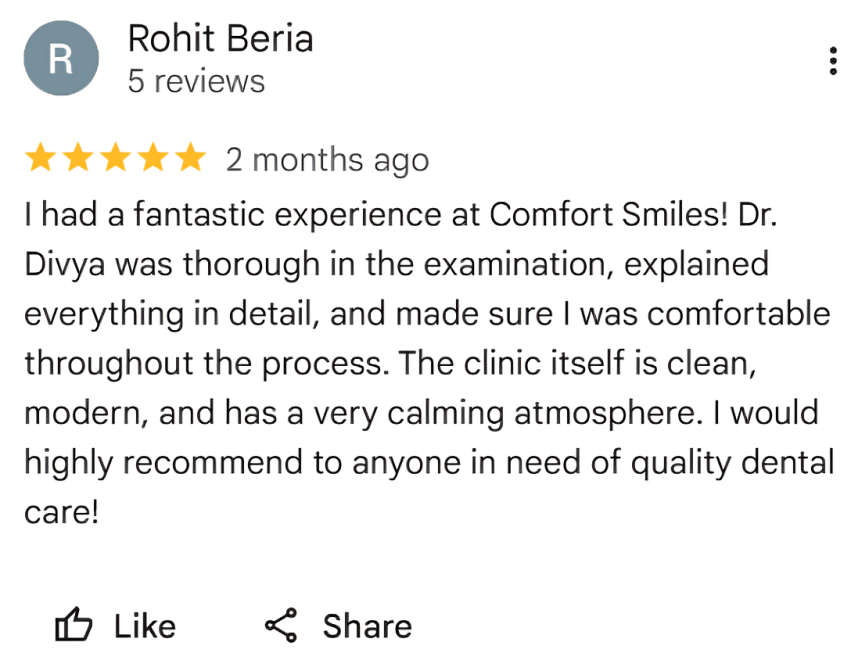 The best way to find a reliable dentist is to look around your area, read online reviews, and speak to people you trust. Many people search for a dentist near me or dental clinic in and check photos or ratings before deciding. More than just a clinic, itâs about how comfortable you feel, whether the doctor listens, whether the place looks clean, and whether things are explained properly. Once you find a place that makes you feel calm and understood, thatâs usually the right one for you.