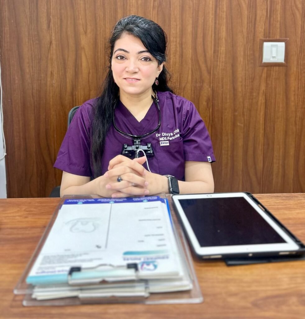 Dr. Divya Dhingra, BDS, MDS, FICOI, FAALT is a skilled Periodontist with over 13 years of experience, specializing in gum care, dental implants, and laser dentistry. She has performed 5,000+ laser procedures and 3,000+ gum surgeries, delivering precise, minimally invasive, and patient-focused care.
